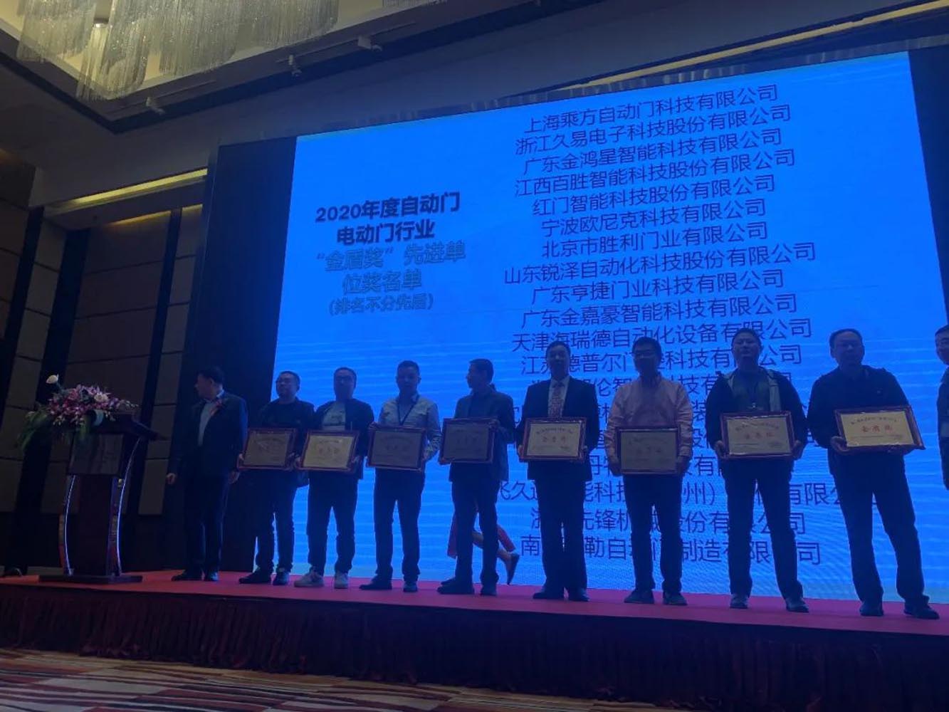 “新時(shí)代、新理想、新征程”——2021‘全國(guó)自動(dòng)門電動(dòng)門行業(yè)年會(huì)在北京盛大召開,金鴻星憑借在經(jīng)濟(jì)效益、社會(huì)效益、經(jīng)營(yíng)管理、科技創(chuàng)新等方面強(qiáng)勁的綜合實(shí)力,在年會(huì)上再次榮膺“金盾獎(jiǎng)‘先進(jìn)單位’”