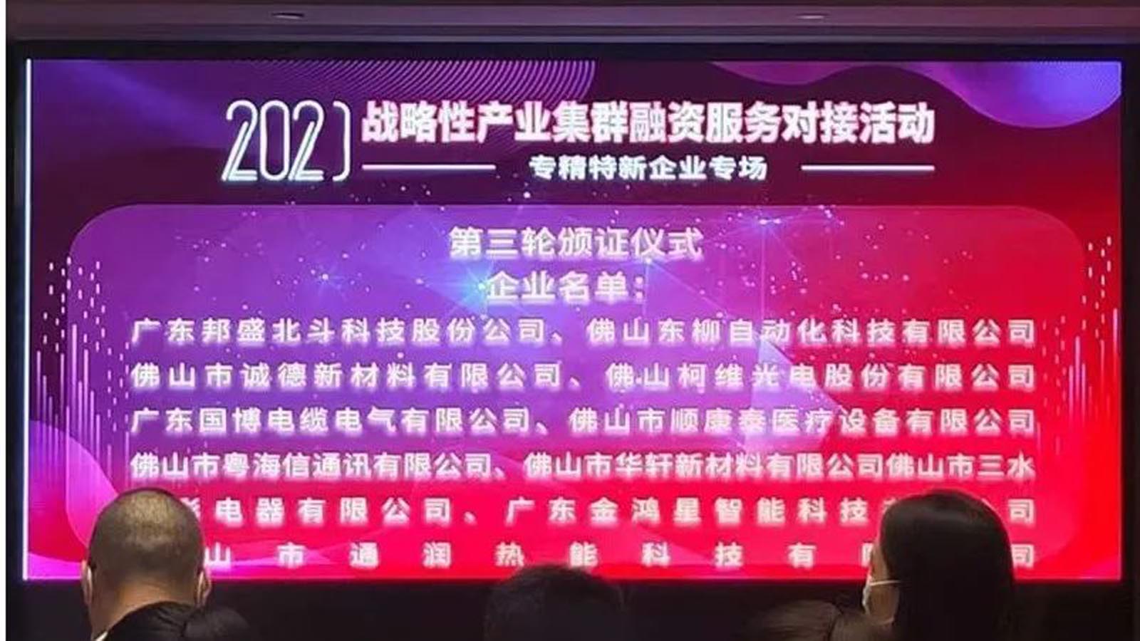 近日,金鴻星智能科技有限公司成功獲得佛山市工業(yè)和信息局發(fā)布2021年佛山市專(zhuān)精特新企業(yè)認(rèn)定并頒發(fā)佛山市專(zhuān)精特新企業(yè)證書(shū)。