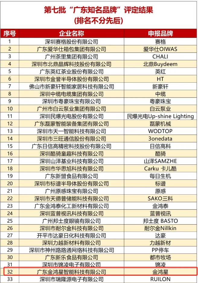 再添榮譽(yù)丨熱烈祝賀金鴻星獲評(píng)第七批“廣東知名品牌”
