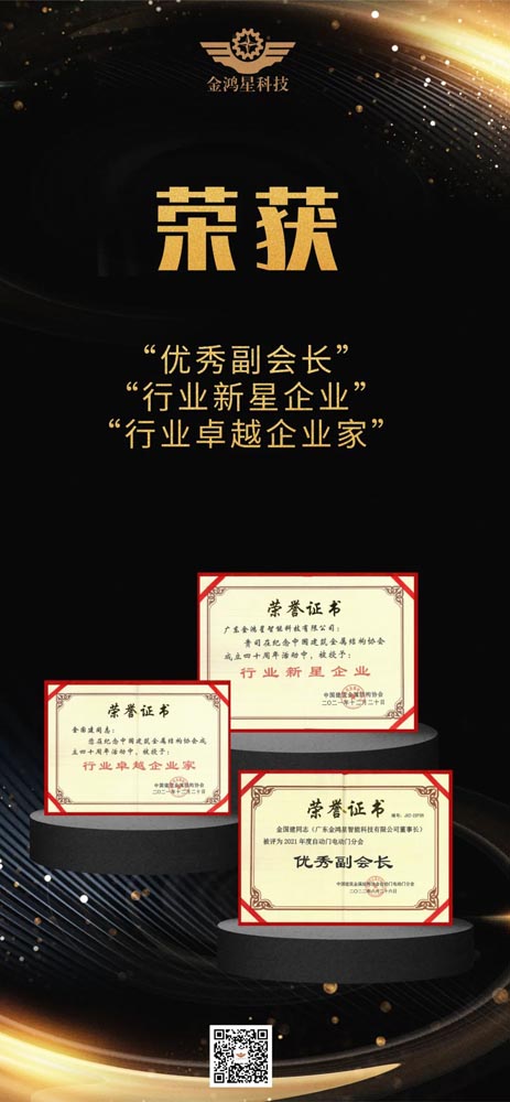 據(jù)悉,“行業(yè)新星企業(yè)”旨在通過獎項評選、挖掘更多推動行業(yè)發(fā)展的企業(yè)及創(chuàng)新技術與產(chǎn)品,鼓勵行業(yè)創(chuàng)新、促進行業(yè)良性競爭。多年來,金鴻星始終懷抱「為用戶提供安全、智能、便捷的電動門」為初衷,圍繞產(chǎn)品研發(fā)、智能制造,不斷推陳出新。2021年以來,金鴻星以強大的綜合實力,收獲“廣東省知識產(chǎn)權示范企業(yè)”、“佛山專精特新企業(yè)”、“全國自動門電動門金盾獎”等榮譽,持續(xù)煥發(fā)品牌新活力,鑄就行業(yè)卓越影響力。